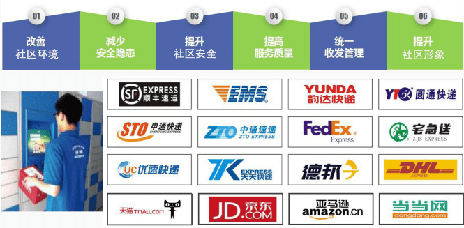 投放快遞柜(1000個以上快遞格口投放,7*24小時服務(wù));快遞服務(wù)中心(專業(yè)人員+標(biāo)準(zhǔn)運營流程)、全方位貼心服務(wù)。
